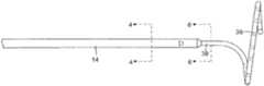 それぞれの牽引ワイヤー42aは、ステンレス鋼又はニチノール等の任意の好適な金属で作製される。好ましくは、それぞれの牽引ワイヤーは、テフロンRTM(Teflon. RTM)の被覆等の低摩擦被覆を有する。それぞれの牽引ワイヤーは、好ましくは約0.0152mm(0.006インチ)〜約0.0305cm(0.012インチ)の範囲の直径を有する。好ましくは、両方の引きワイヤーは同一の直径を有する。平坦な引きワイヤーを丸い引きワイヤーの代わりに用いてよい。それらの断面の寸法は、丸い引きワイヤーに相当する引張強度を与えることができるものであるべきである。 Each puller wire 42a is made of any suitable metal, such as stainless steel or nitinol. Preferably, each puller wire has a low friction coating, such as a Teflon.RTM. Coating. Each puller wire preferably has a diameter in the range of about 0.006 inches to about 0.012 inches. Preferably, both pull wires have the same diameter. A flat pull wire may be used instead of a round pull wire. Their cross-sectional dimensions should be capable of providing a tensile strength equivalent to a round puller wire.