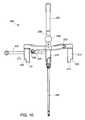 システム200の例示的な実施形態によって、第1、第2および第3のアーム210、212、214の間に配置されるさらなるアームの必要性がなくなり、代わりに、これらのアームが第1および第2のスリーブ穴240、242で置き換えられている。具体的には、第1のスリーブ穴240が、第1のアーム210および第2のアーム214から実質的に等距離の照準アーム202の一部に設けられている。当業者には理解されるように、照準アーム202の部分的に円形の拡張部分244は、照準アーム202から遠位に、スリーブ穴240の寸法に適した曲率半径を有する曲線に沿って延在している。例示的な一実施形態では、拡張部分244およびスリーブ穴242の位置は、スリーブ穴242に挿入されるドリルスリーブが髄内釘206を通って延在する開口部に位置合わせされるように選択される。従って、拡張部分244の寸法が所定の処置の要件に適するように変更し得ることに留意されたい。同様に、第2および第3のアーム212、214間に配置されたスリーブ穴242が、それと共に使用される髄内釘206の要件に適合するように照準アームに沿った他の場所に配置されていてもよい。図示の実施形態では、スリーブ穴242を収容する照準アーム202の一部は、照準アーム202を収容する平面から長手方向にオフセットされている。本発明の趣旨および範囲から逸脱せずに、髄内釘206の標的部分と交わるようにドリルスリーブ204をそこに挿入することができる任意の幾何学的形状を有するように照準アーム202を形成し得ると思われる。  The exemplary embodiment of the