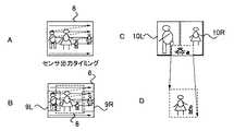 次に、イメージセンサから読み出される画像信号による画像に所定の処理を加える。また、タイミングが調整されることによって、画像信号を書き込むフレームレートを1フレーム毎に異ならせて、イメージセンサから入力する画像信号のうち、一の方向を撮像した画像に対応する一方向画像信号を所定のフレーム期間で第2の領域に書き込む。一方、一の方向に対して左側方向を撮像した画像に対応する左方向画像信号を一方向画像信号のフレーム期間とは異なるフレーム期間で、第1の領域を分割した第1の分割領域に書き込む。また、一の方向に対して右側方向を撮像した画像に対応する右方向画像信号を、左方向画像信号を第1の分割領域に書き込むフレーム期間とは異なるフレーム期間で、第1の領域を分割した第2の分割領域に書き込む。