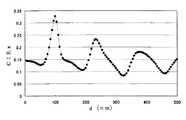 この減衰曲線のn次の極小値においては、膜厚の変動(ばらつき)があったとしても、必要電流の変化が緩やかであるため、パネルの消費電力が安定している。また、本発明で開示される極小値とは、±10%程度のばらつきを許容する。これは、±10%のばらつきがあったとしても、消費電力は十分に小さく、またパネルの消費電力は比較的安定しているからである。なお、±10%は、極小値を示す光学距離からのずれを表すものである。 In the nth-order minimum value of this attenuation curve, even if there is a variation (variation) in the film thickness, the required current changes gently, so that the power consumption of the panel is stable. Further, the local minimum value disclosed in the present invention allows a variation of about ± 10%. This is because even if there is a variation of ± 10%, the power consumption is sufficiently small and the power consumption of the panel is relatively stable. Here, ± 10% represents a deviation from the optical distance indicating the minimum value.