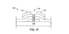 図1A〜1Fは、様々な製造段階における本発明の一実施形態に係るTFT100の概略断面図である。TFTは基板102を含んでもよい。一実施形態では、基板102はガラスを含んでもよい。別の実施形態では、基板102はポリマーを含んでもよい。別の実施形態では、基板102はプラスチックを含んでもよい。更に別の実施形態では、基板102は金属を含んでもよい。  1A to 1F are schematic cross-sectional views of a