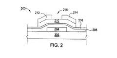 図2は、本発明の別の実施形態に係るTFT200の概略断面図である。TFT200は、基板202の上に配置されたゲート電極204を含む。ソース電極212、ドレイン電極214、アクティブチャネル216、及び半導体層210も存在する。多層ゲート誘電体が存在する。ゲート誘電体は、第1ゲート誘電体層206及び第2ゲート誘電体層208を有してもよい。一実施形態では、第1ゲート誘電体層206は、窒化珪素を含んでもよい。一実施形態では、第2ゲート誘電体層208は、酸化珪素を含んでもよい。上述のように、酸化珪素はシリコンベースのTFTで使用可能ではないが、金属酸化物TFTでは有益かもしれない。  FIG. 2 is a schematic cross-sectional view of a