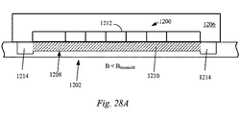 正味磁気引力全体に打ち勝つのに十分な強さの解放力が印加されるまで物体は磁気で取り付けられた状態に留まりうる。しかしながら、一部の場合に、物体を(ジッパのラインに沿って)連続的に取り外すことが望ましく、この場合に、解放力は、一度に磁気素子の1つのペアの正味磁気引力に打ち勝つのに十分な強さだけが必要になる。物体を取り付けるために機械式留め具のようなコネクタは必要とならない。さらに、磁気取り付け特徴部間の磁気相互作用への不要な干渉を避けるために、磁気取り付け特徴部の近くにある物体の少なくとも一部は、プラスチックや、アルミニウム又は非磁気ステンレススチールのような非鉄金属のような磁気的に不活性な物質で形成されうる。 The object can remain magnetically attached until a release force that is strong enough to overcome the overall net magnetic attraction is applied. However, in some cases it is desirable to remove the object continuously (along the zipper line), in which case the release force will overcome the net magnetic attraction of one pair of magnetic elements at a time. Only enough strength is needed. A connector such as a mechanical fastener is not required to attach the object. In addition, to avoid unnecessary interference with the magnetic interaction between the magnetic attachment features, at least some of the objects near the magnetic attachment features are made of plastic, non-ferrous metals such as aluminum or non-magnetic stainless steel Or a magnetically inactive material such as