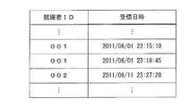 離床予兆テーブル124は、通信部280により離床予兆情報を受信した日時を記憶する。本実施形態においては、図6に示すように、就寝者IDに対応づけて、離床予兆情報を受信した日時が記憶される。  The bed leaving sign table 124 stores the date and time when the bed leaving sign information is received by the