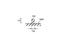 また、周方向溝50Bの側壁50B1から側壁50B3までの距離を溝幅Wとした場合、長さLは、W/tanθf+TWf/sinθfとして表すこともできる。ここで、突起幅TWfは、図9に示すように、突起部500の短手方向、つまり、突起部500の延在方向xに直交する方向における突起部500の幅である。  When the distance from the side wall 50B1 to the side wall 50B3 of the