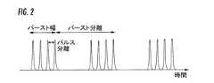 この方法では、バーストの持続時間は、約数マイクロ秒よりも少なくても良く、バーストの一つ以上のパルスは、約100psよりも少ないパルス幅と、約1ns〜1μsの範囲内の時間的間隔を有しても良く、またはバーストのパルスの一つ以上は、約10psより少ないパルス幅と、約1ns〜1μsの範囲内の時間的間隔を有しても良い。 In this method, the duration of the burst may be less than about a few microseconds, and one or more pulses of the burst may have a pulse width less than about 100 ps and a time interval in the range of about 1 ns to 1 μs. Or one or more of the pulses of the burst may have a pulse width of less than about 10 ps and a time interval in the range of about 1 ns to 1 μs.