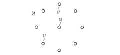 図5は、例として中心束18と、合計8つの像視野周縁部にわたって均一に分布し、それによって全像視野を制限する光束17用の、しかも左(図5a)もしくは右(図5b)の観察通路用の角膜31上の光束横断面を示す。FIG. 5 shows by way of example a