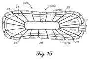 基板200はまた三次元であってもよい。三次元基板200は、任意の数の形状でありうる。こうした三次元基板は、固体でもよく、または、実質的に固体であってもよい。所定の実施形態では、三次元基板は、均一なまたは実質的に均一な材料をその形態全体を通して依然として備えながら、柔軟性、可撓性、伸張性であり、たとえば発泡体あるいは可撓性/伸張性ポリマー製の球状、卵状、円柱状、円板状、または他の三次元物体である。所定の実施形態では、三次元基板200は、数種類の材料から作られてもよい。三次元基板200について現在のところ好ましい実施形態では、基板は膨張性本体(本明細書ではエラストマーベッセルとも呼ばれる)である。バルーンまたは類似物などのこのタイプの膨張性本体は、伸張性であってよい。しかし、他の実施形態では、膨張性本体は、伸張することなく膨張する。所定の実施形態では、膨張は、ガスまたは液体によって達成されうる。いくつかの実施形態では、粘性流体による膨張が好ましいが、種々のガス、流体、またはゲルが、こうした膨張に使用されてもよいことが明らかである。バルーン状の、および円板状の膨張性基板を備える実施形態は、以下でさらに詳細に論じられる。これらの実施形態に関して論じる膨張を達成するシステムは、本明細書の全ての膨張性基板の実施形態に適用される。  The