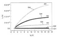 図10は、前記実験に使用したTFTのゲート電圧−ソース/ドレイン電流特性を示す。図11は、前記実験に使用したTFTのドレイン電流−ドレイン電圧特性を示す。