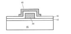 図1を2−2’線断面を示す図2を参照すれば、基板40上に絶縁膜42が存在する。基板40は半導体基板とすることができ、例えば、シリコン基板である。絶縁膜42の所定領域上にゲート44が存在する。ゲート44は、モリブデンで形成することができ、他の伝導性物質で形成されてもよい。絶縁膜42上にはゲート44を覆うゲート絶縁膜46が存在する。ゲート絶縁膜46はシリコン酸化膜とすることができる。ゲート絶縁膜46上にはチャンネル層48が存在する。チャンネル層48は、ゲート絶縁膜46上でゲート44を覆う形態で備えられている。チャンネル層48は、酸化物半導体層とすることができる。  Referring to FIG. 2 showing a cross section taken along line 2-2 'of FIG. The