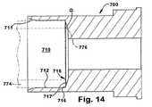 組み立てられた継手の本締めの間に、上記第1のフェルールが半径方向に転置されて上記第1の先細の長手面と接触し、そして上記第2のフェルールが半径方向に転置されて上記第2の先細の長手面と接触する、ドライブナット。An exemplary type of coupling in which the present invention may be used includes two ferrules that provide a gripping and sealing action between the tube and the body under the influence of a female threaded drive nut. The exemplary embodiments shown and described in the present application show various inventive aspects when used with this two ferrule-type joint, but these inventive aspects include, for example, single ferrule joints, other types of pipes The present invention can also be applied to other types of joints such as a joint using a gripping device and a joint using a drive nut with a male thread. Exemplary embodiments also include fittings for use with stainless steel tubing having diameters of 1/4 inch, 3/8 inch, and 1/2 inch, although the inventive aspects of the present application include many A fitting may be provided for use with tubing of size and type.