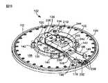 隔壁板102に組み込まれている吸引システムの一部として、環状の谷部152は、環状の本体104の外周112に近接して上側表面108に形成されている。吸引流路(図示せず)は、環状の本体104の下側表面106に配置されているポート156と、谷部152に向かって開口している対応するポート158との間で延びている。  As part of the suction system built into the