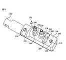 流体入口部材240は、ねじ切りされた基材242(ねじ切りは図示されず)およびフレア接続244を含む。供給管246は、フレア接続244に取り付けられ、固定ナット248により所定の位置に保持されている。流体入口部材216および240とそれらのそれぞれのノズル開口の配列との間の流体通路は、譲受人の同時係属中の特許出願において示されるスプレー棒のアームに関して示されている様に設けられてもよい。  The