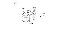 軽量化穴394は、側面390および396の上部に形成されている。側面400および404のそれぞれは、それぞれ3つの穴402を含む。穴402は、洗浄管保持材510を保持するために使われる。図37に示されるように、それぞれの洗浄管保持材510は、首部512、本体514および穴516を含む。首部512は、好ましくは螺合(ねじの機構は図示せず)により穴402に係合している。洗浄管504は、処理室16に向かって穴516を通じて下側に導かれている。これらの導管の端部は、導管の端部のノズル508が、隔壁板102の下側表面106を洗浄又は、さもなければ処理するために、ほぼ水平方向に噴き出すことができるような高さに配置されている。  The lightening
