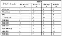 さらに、その他の例では、図14−(C)に示すように、各ページに設けた所定の領域901に関連度の値が所定値以上のアプリケーションのアプリケーション名とアイコンを共通に配列し、それ以外の領域902に残りのアプリケーションのアプリケーション名とアイコンを順次配列したアプリケーション選択画面としてもよい。なお、図14−(C)では、所定値を「7」としているため、各ページに設けた所定の領域901にナビゲーション部41との関連度が「7」以上のアプリケーション(「航空地図」、「施設口コミ」、「地域情報検索」)を関連度の高い順にアイコンとアプリケーション名を配列し、それ以外の領域902に、その他のアプリケーションを関連度の高い順に順次配列している。