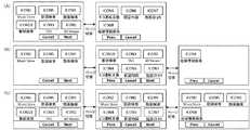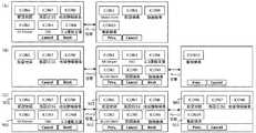 Each page can be switched by pressing the “Prev.” Key for switching to the previous page and the “Next” key for switching to the next page. Also, by depressing the “Cancel” key, the display of the application selection screen is stopped, and the screen whose display is controlled when the application selection screen display key (M2) is pressed (FIG. 5- (A) or FIG. 5). -Return to (B)).