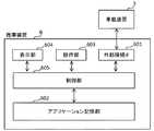 または、前記画面生成部において、ユーザ操作に応じて順次表示される複数のページから構成された前記アプリケーション選択画面を生成すると共に、該機能部に対する関連度が高いアプリケーションのアイコンを各ページに設けた所定の領域に共通に配置し、関連度が低いアプリケーションのアイコンを、各ページの前記所定の領域以外の領域に配列するように構成してもよい。Alternatively, the screengeneration unitgenerates the application selection screen composed of a plurality of pages that are sequentially displayed according to a user operation, and an icon of an application having a high degree of association with the function unit is provided on each page. An icon of an application that is commonly arranged in a predetermined area and has a low degree of association may be arranged in an area other than the predetermined area of each page.