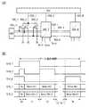 または、図1(A)の半導体装置では、期間T4と期間T5とのうち少なくとも一方において、トランジスタ101〜104はオフになる。したがって、トランジスタが1動作期間中にずっとオンにならないので、閾値電圧の上昇又は移動度の低下などのトランジスタの特性劣化を抑制することができる。Alternatively, in the semiconductor device in FIG. 1A, the