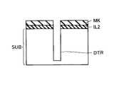 引き続き、パターニングされたマスク材MKをマスクとして半導体基板SUBに異方性エッチングが施される。これにより、半導体基板SUBの表面から内部に延びる溝DTRが形成される。この後、マスク材MKが等方性エッチングにより除去される。 Subsequently, anisotropic etching is performed on the semiconductor substrate SUB using the patterned mask material MK as a mask. Thereby, a trench DTR extending inward from the surface of the semiconductor substrate SUB is formed. Thereafter, the mask material MK is removed by isotropic etching.