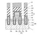 また、キャップ絶縁膜43が、第一の溝部13a内に埋め込まれたゲート電極31の上面31c上と、第二の溝部13b内に埋め込まれたダミーゲート電極32の上面32c上とを埋め込むように形成されている。また、キャップ絶縁膜43は半導体基板1の上面1bから突出するように形成されている。  Further, the