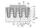また、ゲート電極31の上面31cと、ダミーダミーゲート電極32の上面32cは、半導体基板1の上面1bよりも下方に形成されている。  Further, the