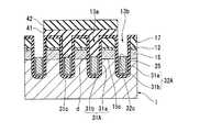 また、ゲート電極31は、第一の溝部13aに、第一のゲート絶縁膜25aを介して埋め込まれた第一の導電層31Aから構成されている。The