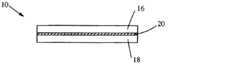 次に図2を参照すると、特定の実施形態では、粉末が、後で接合される2つの多孔質溶解性固体基材の間に挟まれる(例えば、多孔質溶解性固体基材を実質的に溶解させないように、隣接面又は縁を水の薄層及び/又は可塑剤と印加圧力で封止して接着することによって)。この実施形態では、パーソナルケア物品10は、2つの多孔質溶解性固体基材16及び18を含み、その間に表面常在コーティング20が配置される。  Referring now to FIG. 2, in certain embodiments, the powder is sandwiched between two porous soluble solid substrates that are subsequently joined (eg, substantially sandwiching the porous soluble solid substrate). By sealing and adhering adjacent layers or edges with a thin layer of water and / or plasticizer at an applied pressure so as not to dissolve). In this embodiment, the