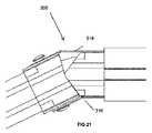 手術を行うために使用すべきフレキシブルな医療用処置器具は、ポート部を通って前方へ進み、アクチュエータへの係合を通じてポート部の先端側端部を操縦し、偏向させるためにポート部のハンドルが操作される。 もし、図20Aに示すポート部の実施例を使用するとすれば、手術中、医療用処置器具の先端側端部の配置を更に調整できるようにするために、関節ジョイント306が屈曲できるようになっている。 A flexible medical treatment instrument to be used to perform a surgery advances forward through the port portion, and handles the port portion to steer and deflect the distal end of the port portion through engagement with the actuator. Is operated. If the embodiment of the port portion shown in FIG. 20A is used, the joint joint 306 can be bent during surgery to allow further adjustment of the placement of the distal end of the medical treatment instrument. ing.