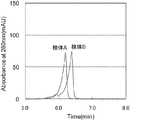 実施例1、比較例1で作製した充填剤を充填したアニオン交換カラムを用いて、配列違いのオリゴヌクレオチド(検体A、B)を測定して得られたグラフをそれぞれ図1、2に示した。