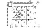 図1に示した例では、複数の第1配線110は、Y軸方向に沿って並ぶ。複数の第1配線110のそれぞれは、X軸方向に沿って延びる。複数の第2配線120は、X軸方向に沿って並ぶ。複数の第2配線120のそれぞれは、Y軸方向に沿って延びる。  In the example illustrated in FIG. 1, the plurality of