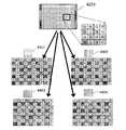 図9(B)は、2行2列に配列された4個の画素(2×2ブロック)に対応する偏光フィルタの1単位801を示している。この1単位801の中では、平面内に90°ずつ回転させた偏光フィルタ(4個の偏光子)が配置されている。図9(B)では、各偏光フィルタ上に示された複数の直線が偏光の透過軸の方向を示している。  FIG. 9B shows one