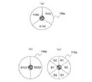 偏光撮像用カラーホイール116bは、偏光撮像を実行する波長域の設定により種々の構成を有し得る。図7(b)は、グリーンとブルーを混合した2種類の波長帯域の光を順次透過するカラーホイール116bの例を示している。このカラーホイール116bは、表面凹凸テクスチャを検出するために適した波長域を選択することが可能である。一方、図7(c)は、6個の異なる波長域の光を順次透過するカラーホイール116bの他の例を示している。このような構成を有するカラーホイール116bは、フルカラーの直交ニコル画像を取得するに適している。なお、図7(a)のカラーホイール116aおよび図7(b)または(c)のカラーホイール116bの一方が、外部からの信号によって指定されて選択的に使用される。より具体的には、非偏光撮像モードまたは通常撮像モードではカラーホイール116aが使用され、偏光撮像モードではカラーホイール116bが使用される。  The polarization