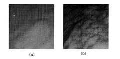 図5は、実際にアクリル板表面に縞状に凹凸(多数の溝)が形成されたレンチキュラー板を用いて、この偏光撮像を実行した結果を示す図である。被写体は、完全拡散板上に血管を模した透明シートを置き、その上に乳白色の2mm厚のアクリル製レンチキュラー板を載せたものである。この被写体を直上から観察した。レンチキュラー板の溝は、図の紙面内における水平方向に対して0°の方向に平行に配置された。図5(a)と図5(b)は、それぞれ、偏光照明がP、Sになった状態で撮影した像を示している。すなわち、図5(a)では、偏光照明の偏光方向と被写体表面の溝方向とが平行であり、図5(b)では、偏光照明の偏光方向と被写体表面の溝方向とが直交している。図5(a)、(b)の偏光撮像は、両者とも直交ニコル状態で行われた。このときに撮像された直交ニコル画像を観察すると、図5(a)ではP方向に明暗の縞が明瞭に観察される。一方、図5(b)では明暗が不明瞭になる。 FIG. 5 is a diagram showing a result of executing this polarization imaging using a lenticular plate in which irregularities (many grooves) are actually formed in stripes on the acrylic plate surface. The subject is a transparent sheet imitating a blood vessel placed on a complete diffusion plate and a milky white 2 mm thick acrylic lenticular plate placed thereon. This subject was observed from directly above. The grooves of the lenticular plate were arranged parallel to the direction of 0 ° with respect to the horizontal direction in the drawing sheet. FIG. 5A and FIG. 5B show images taken in a state where the polarized illumination is P and S, respectively. That is, in FIG. 5A, the polarization direction of the polarized illumination and the groove direction of the subject surface are parallel, and in FIG. 5B, the polarization direction of the polarized illumination and the groove direction of the subject surface are orthogonal. . Both the polarization imaging in FIGS. 5A and 5B were performed in a crossed Nicols state. When the orthogonal Nicol image captured at this time is observed, bright and dark stripes are clearly observed in the P direction in FIG. On the other hand, the brightness becomes unclear in FIG.
