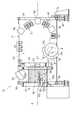 つまり、サイクロトロン2及び輸送ライン5の各要素は、外殻部3の回転軸Aに沿って円筒体の直径方向に延在する仮想平面上(図2の外殻部3断面に相当)に略U字状に配置される。なお、サイクロトロン2及び輸送ライン5の各要素は、略U字状に配置されるものに限定されず、その他の配置でもよく、例えば略L字状に配置されているものでもよい。下部側にサイクロトロン2が配置され、このサイクロトロン2から上方へ延在し、上部側で屈曲されて水平方向へ延在して照射部4へ連続するような配置でもよい。  That is, each element of the
