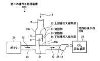 また、本実施例に係る第二の排ガス処理装置10Bにおいては、流路形成手段として流路形成手段23Bのみを煙突15内に設けるようにしているが、本発明はこれに限定されるものではなく、図1に示す実施例1に係る第一の排ガス処理装置10Aの流路形成手段23Aを併用するようにしてもよい。  Further, in the second exhaust