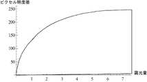 図3は、例示的カメラの応答カーブを示す。「露光量」と題されたx−軸は実世界の露光量値を表し、「ピクセル明度値」と題されたy−軸はカメラによって記録された対応するピクセル放射輝度値を表す。「露光量」は、センサが受光した放射照度に露光時間を乗じた量として定義される。単位は平方メートル当たりワット秒である。ピクセル放射輝度の値は、0〜255の整数を取る一方、露光量値は実数である。 FIG. 3 shows the response curve of an exemplary camera. The x-axis entitled “Exposure” represents the real world exposure value and the y-axis entitled “Pixel Brightness Value” represents the corresponding pixel radiance value recorded by the camera. “Exposure amount” is defined as an amount obtained by multiplying the irradiance received by the sensor by the exposure time. The unit is watt seconds per square meter. The pixel radiance value takes an integer from 0 to 255, while the exposure value is a real number.