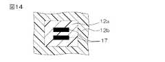 なお、このような実施形態でも、図9に示す実施形態と同様、図示しないが、隣接領域12aが、互いに隣り合う外部側端子部17に、連続するように設けられていれば、その数は特に制限されず、例えば、隣接領域12aを複数(2つ)設けることもでき、また、それに対応するように、金属開口部19を複数(2つ)設けることができる。より具体的には、例えば、積層方向に投影した投影面において、複数(4つ)の一方側外部側端子部17aを全て含むように、隣接領域12aを設けるとともに、複数(4つ)の他方側外部側端子部17bを全て含むように、隣接領域12aを設け、それら複数(2つ)の隣接領域12aに対応するように、金属開口部19を複数(2つ)設けることができる。  Even in such an embodiment, as in the embodiment shown in FIG. 9, the number of