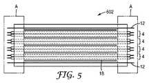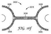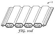 図10bに図示されている工程において、遮蔽フィルム8が形成される。任意の好適な方法、例えば連続ワイドウェブプロセスなどを使用して、単一層又は多層ウェブが形成されてもよい。各遮蔽フィルム8は、任意の好適な長さで形成されてもよい。遮蔽フィルム8は次いで、そのように提供されてもよく、又は所望の長さ及び/又は幅に切断されてもよい。遮蔽フィルム8は、横断方向の部分的な折り曲げを有するように事前形成して、長手方向の可撓性を増大させることができる。遮蔽フィルム8の一方又は両方は、適合性接着層10を含んでもよく、これは例えば、積層又はスパッタリングなどの任意の好適な方法を使用して遮蔽フィルム8上に形成され得る。  In the process illustrated in FIG. 10b, the shielding