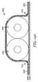 図7dは、信号導体セット1104を示す遮蔽電気ケーブル1102の横断面図である。導体セット1104は、ケーブル1102の長さに沿って延在する、2つの絶縁導体1106を含む。ケーブル1102は、ケーブル1102の幅に沿って互いに間隔を置いて配置され、かつケーブル1102の長さに沿って延在する、複数の導体セット1104を含み得る。2つの遮蔽フィルム1108は、ケーブル1102の対向する側に配置され、かつカバー部分1107を含む。横断面において、カバー部分1107は組み合わされて、ケーブル1102のカバー領域1114における導体セット1104を実質的に包囲する。遮蔽フィルム1108の挟まれた部分1109は、導体セット1104の各側に、ケーブル1102の挟まれた領域1118を形成する。  FIG. 7 d is a cross-sectional view of the shielded