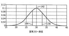 例えばQave(max)をフローの測定として使用する実施態様において、図6は、標準偏差4で30の値を持つ平均値142の回りのQave(max)について正規分布を例示する。この例では、平均の95%は28.5lpmであり、線144で示される。データの60パーセンタイルは33.2lpmであり、線246で示される。標準平均は、パーセンテージで表現した平均についての標準偏差の比である。他の測定又は特徴は場合によりQave(max)値の代わりに、例えば平均フロー、ピークフロー、呼吸容積、最小換気量又はその他の測定などが使用され得る。For example, in an embodiment using Qave (max) as a measure of flow, FIG. 6 illustrates a normal distribution for Qave (max) around the