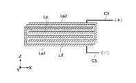そこで本実施形態では、図2に示すように、2本の配線部材C3のうち、一方の配線部材C3(第1の配線部材)は、振動板321に設けられた端子部324に接続され、他方の配線部材C3(第2の配線部材)は、圧電素子322に設けられた端子部325に接続される。一方の端子部324は、振動板321の第2の主面32bに設けられ、他方の端子部325は、圧電素子322上面の第2の引出電極層Le2に設けられる。これにより、第1及び第2の引出電極層Le1,Le2の間に所定の駆動電圧を印加することが可能となる。  Therefore, in the present embodiment, as shown in FIG. 2, one of the two wiring members C3, one wiring member C3 (first wiring member) is connected to a