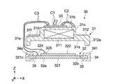 なお、カバー42の押圧部421が複数の柱体で構成される場合には、これら柱体間に配線部材C3を通すことができるため、上面部31dへのガイド溝31fの形成は省略することができる。  In addition, when the