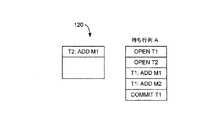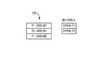 T1」レコード、およびトランザクションT2の開始を示す「OPEN T2」レコードを保持する。書き込みバッファ120は、ヘッダ:「T1:ADD M1」、「T2:ADD