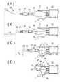 本体部71の基端部には、出力コネクタ87の外形形状に対応した接続孔74が設けられており、この接続孔74の内部に、入力コネクタ75の電極端子が配置されている。  A