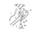 このように押し片109及び作動部材104を操作することにより、第1ロック部R1の解除と、第2ロック部R2の解除とを連動させれば、挟持部材1のカテーテル内への格納操作と、長尺な主操作ロッド7aを左心房側から引き抜く際に、必ず主操作ロッド7aを直状にする操作とを連動させることでき、生体組織Mを損傷させる可能性がある主操作ロッド7aが湾曲している状態での牽引操作や、挟持状態にある挟持部材1の後退動作を未然に防止でき、生体組織Mを損傷あるいは破断する事態を未然に防止できる。  If the release of the first lock portion R1 and the release of the second lock portion R2 are interlocked by operating the