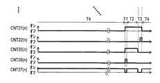 また閾値検出期間T2において、トランジスタQ25をオン状態とすることが望ましいが、第1コンデンサC21のリーク電流を無視できればトランジスタQ25をオフ状態としてもよい。この場合には制御信号CNT25(i)と制御信号CNT26(i)とを共用することができる。 In the threshold detection period T2, it is desirable to turn on the transistor Q25. However, the transistor Q25 may be turned off if the leakage current of the first capacitor C21 can be ignored. In this case, the control signal CNT25 (i) and the control signal CNT26 (i) can be shared.