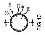 遠位メンバ220は、本体294およびキャップ296を含んでいる。遠位メンバ200の本体294は、アブレーション・エネルギーを標的組織領域に伝えるために当業者に既知の任意の電気的および潜在的に熱的伝導材料から構成することができる。電気的伝導材料の例は、金、プラチナ、イリジウム、パラジウム、ステンレス・スチールおよび/またはこれらの組み合わせを含む。特に、プラチナとイリジウムの組み合わせは、種々の組み合わせで利用できる。本体294は、遠位部分298および近位部分300を有する。本体294の遠位部分298は、ほぼ円筒形とすることができる。本体294の遠位部分298は、非貫通孔302を画定している。非貫通孔302は、本体294の遠位部分298の遠位端304において開口しており、本体294の遠位部分298の近位端306において閉じている。本体294の遠位部分298は、軸方向に伸びる少なくとも1つの通路308(たとえば、流体分配溝)も画定している。軸方向に伸びる通路308は、本体294の遠位部分298のほぼ全長にわたって伸びることができる。軸方向に伸びる通路308は、本体294の遠位部分298の遠位端304まで伸びることができる。軸方向に伸びる通路308は、本体294の遠位部分298の遠位端304への潅注流体の流れを可能にする。本体294の遠位部分298は、軸方向に伸びる通路308から近くに潅注流体を向けるように構成される少なくとも1つの近位潅注ポート310を含むことができる。近位潅注ポート310は、本体294に対してほぼ軸方向に伸びることができる。本開示の1つの実施形態では、本体294の遠位部分298は、複数の近位潅注ポート310を含むことができる。