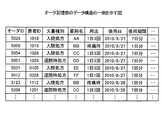図2を用いて、抽出部131がオーダを抽出する処理を説明する。ここでは、2010年8月27日に当日使用されるオーダを抽出する場合を説明する。この場合、抽出部131が受け付ける期間は、開始日「2010/8/27」から終了日「2010/8/27」までとなる。抽出部131は、使用日が「2010/8/27」であるオーダをオーダ記憶部121から抽出する。図2に示す例では、抽出部131は、オーダID「5029」「5058」「5054」「5051」「5031」「5012」のオーダを抽出する。  A process in which the