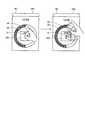 図13に示す場合では、スマートフォン1が、第1のタッチジェスチャとして時計回りのスワイプを検出し、検出した時計回りのスワイプの移動距離に応じて表示するアイコンを切り替える制御の例を説明した。しかしながら、これに限定されるものではなく、経路62におけるスワイプの距離と方向に応じて、表示領域61に表示するアイコンを切り替えてもよい。例えば、スマートフォン1は、第1の方向(例えば、時計回り)へのスワイプが検出された場合にはスワイプの距離を加算し、第2の方向(例えば、反時計回り)へのスワイプが検出された場合にはスワイプの距離を減算することにより、スワイプの移動距離を算出し、算出した移動距離に応じてアイコンを切り替えてもよい。以下、図14を参照しつつ、経路62におけるスワイプの距離と方向に応じた制御の他の例を説明する。  In the case illustrated in FIG. 13, an example of control in which the