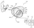 このスリーブ102は一般に繊維で作られているが、変形可能であり、電気的に絶縁されていて、好ましくは伸縮性のある代替材料、例えば様々なプラスチックが可能である。このスリーブ102に伸縮性材料を用いることにより、このスリーブ102は、ユーザの椀に上手く通されることができる。  The